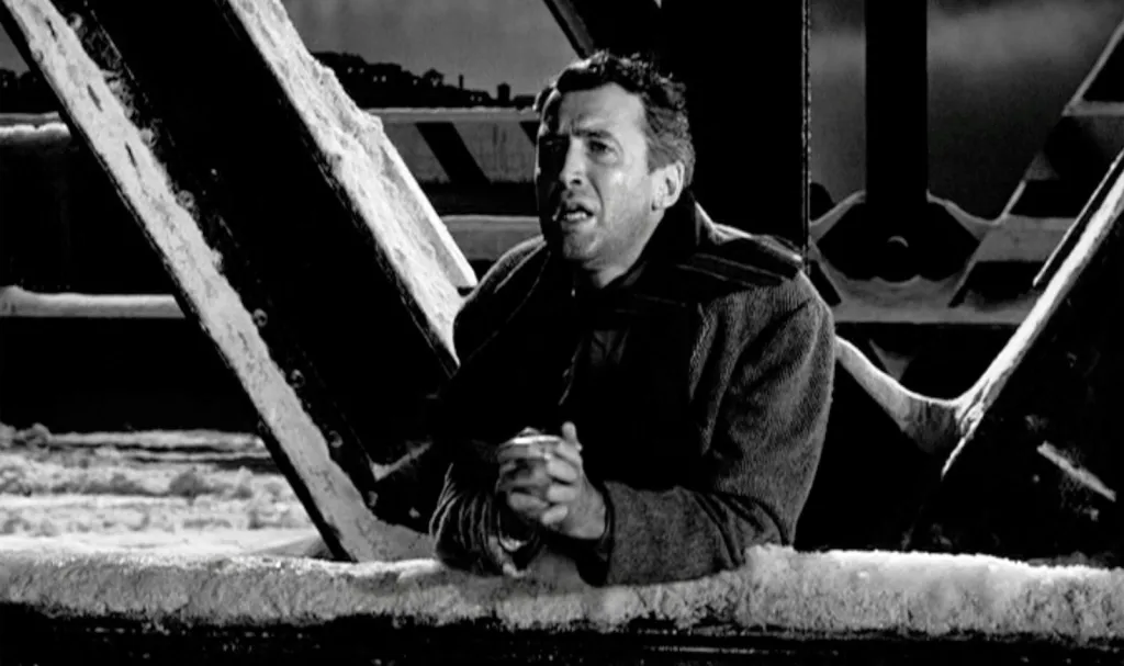 La vie est belle offre un exemple intéressant de résultat d’une scène qui est montré bien plus tard que les deux éléments précédents de la scène (objectif et conflit). (It’s a Wonderful Life (1947), Liberty Films.)